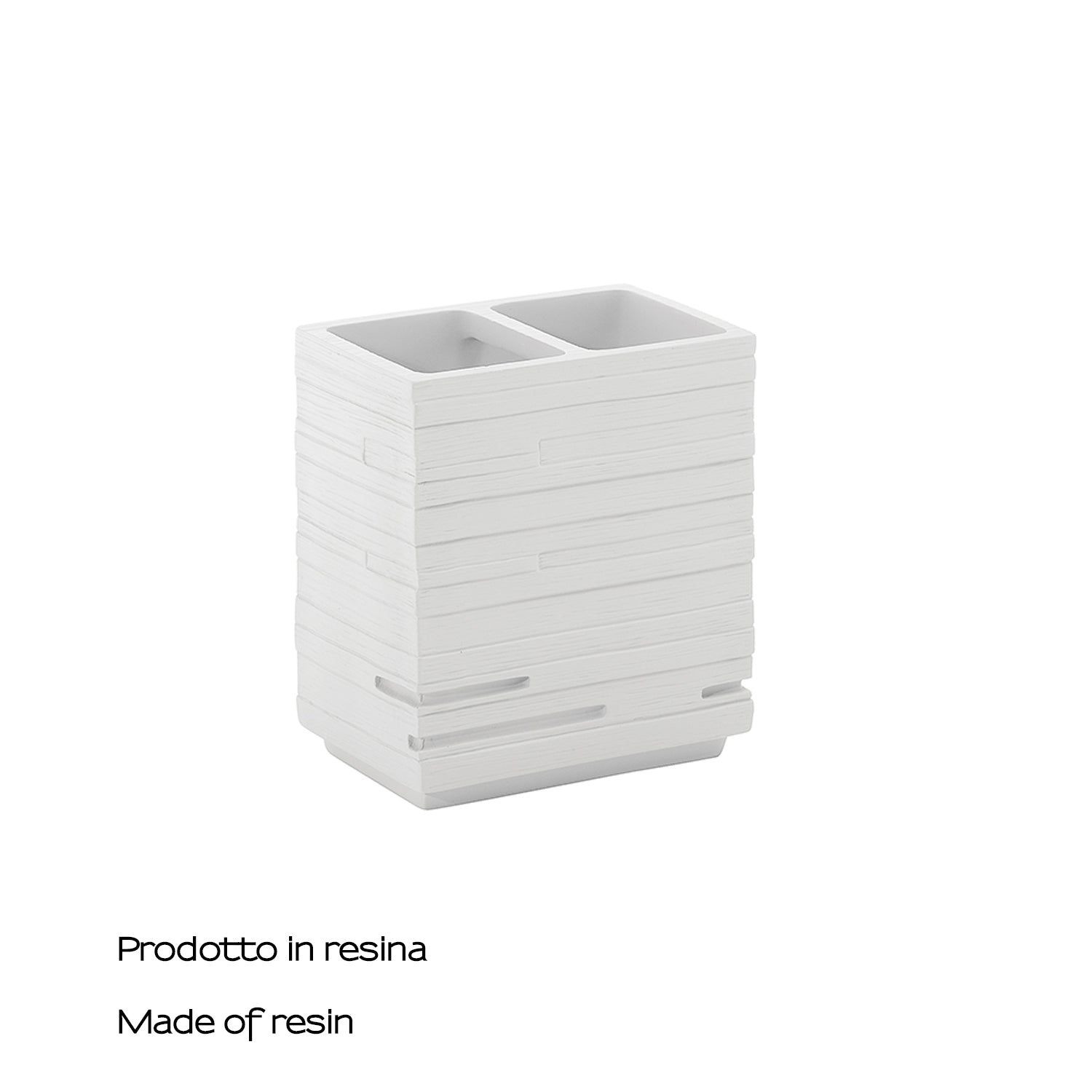 Conçu pour durer dans le temps, l'objet est simple à nettoyer et résistant à l'humidité typique de la salle de bain. Les dimensions compactes (11,2 cm de hauteur, 10 cm de longueur, 6,5 cm de profondeur) accueillent deux compartiments pour brosses à dents, maintenant l'ordre sur le plan ou sur l'élévation. La finition Blanc, présente dans toute la ligne Quadrotto, met en valeur des lignes épurées et une élégante sobriété. Un accessoire qui reflète la tradition italienne du design, réalisé en Italie, avec siège à Origgio, où Gedy soigne chaque détail pour offrir durabilité et valeur dans le temps.