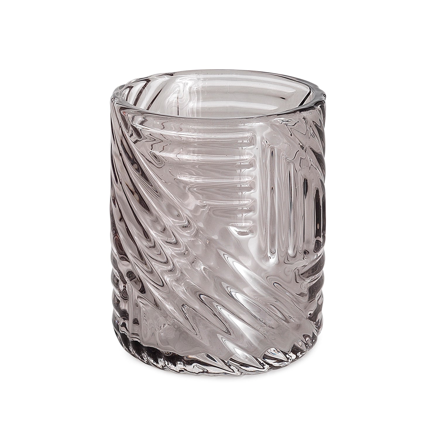 Porta-brosses à dents en verre de la série Corinne de Gedy représente une touche de luxe sobre pour la salle de bain moderne. Réalisé en verre transparent de haute qualité, sa clarté capte la lumière et met en valeur la pureté du design. Le corps présente un motif en spirale qui enveloppe la surface, offrant charme et raffinement sous tous les angles.