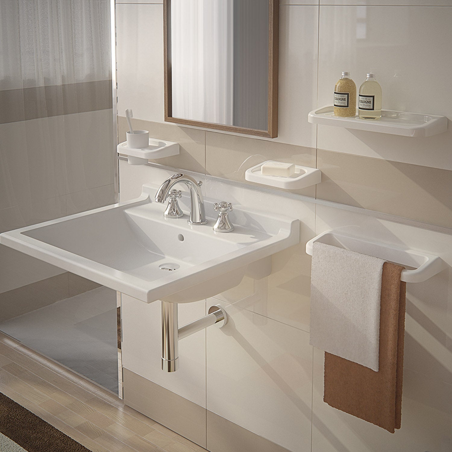 Porte-savon mural de la série Darios de Gedy, blanc brillant, c'est une touche de raffinement qui élève chaque salle de bain. Le travail artisanal et un soin méticuleux des détails transforment un accessoire quotidien en un élément de valeur durable : lignes essentielles, proportions équilibrées et une finition impeccable qui s'intègre à tout décor. Au-delà de l'esthétique, il offre praticité : un espace ordonné et hygiénique, pensé pour accompagner l'usage quotidien avec discrétion et dignité.