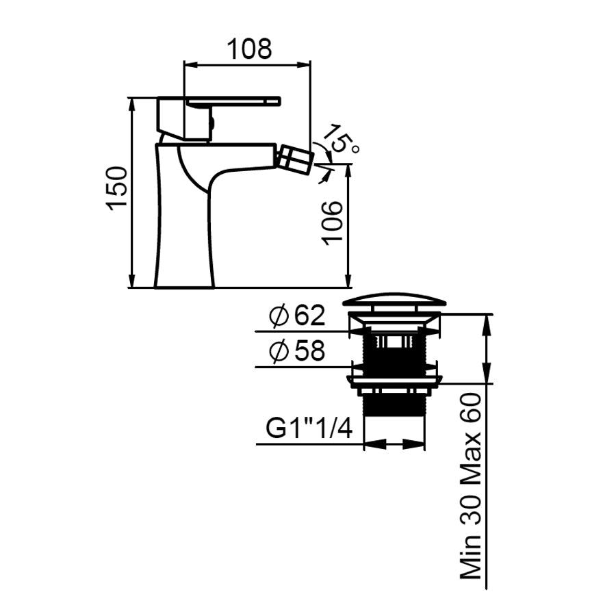 Mitigeur bidet avec bonde click clack 1''1/4 Artis collection Indy noir mat