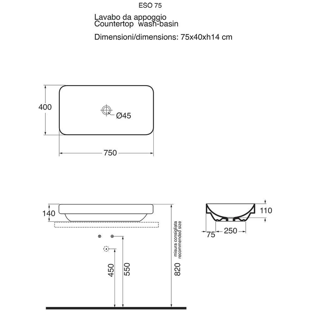 Lavabo da appoggio / semincasso Ceramica Azzurra Elegance 75X40