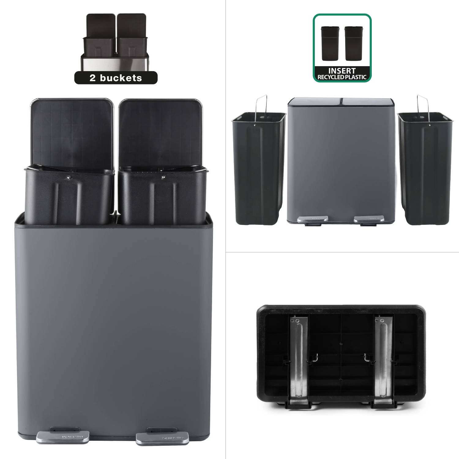 Pattumiera a pedale modello Aliya 2x20 Lt. colore grigio opaco