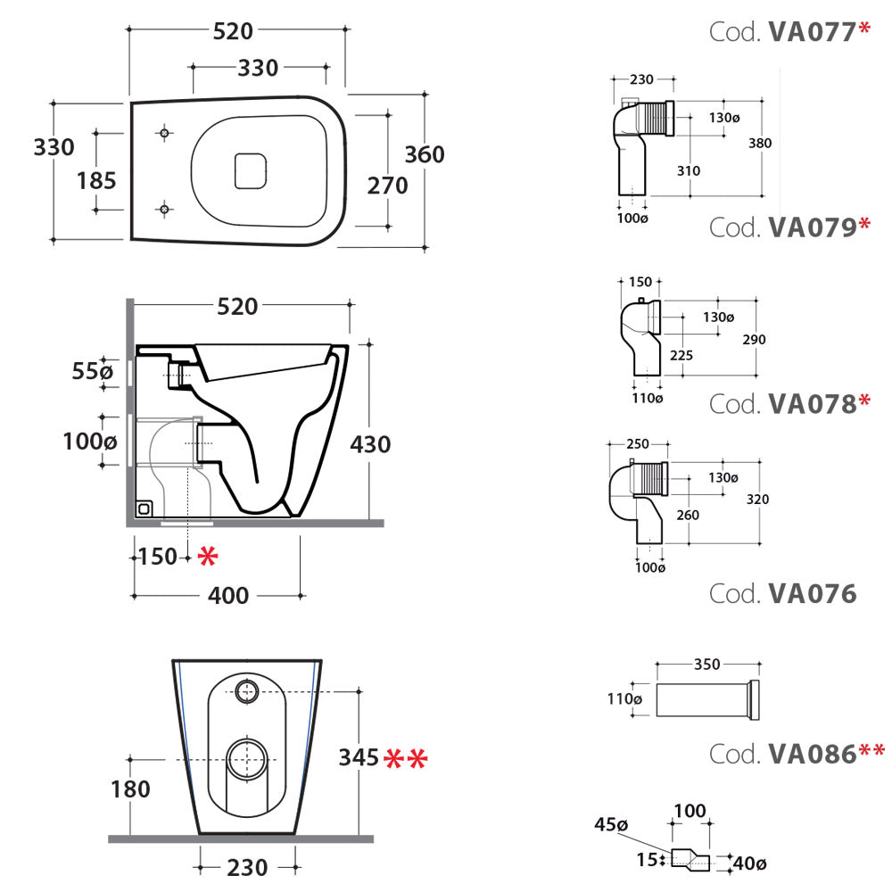 - Scarico traslato per un allineamento semplice e un aspetto pulito.